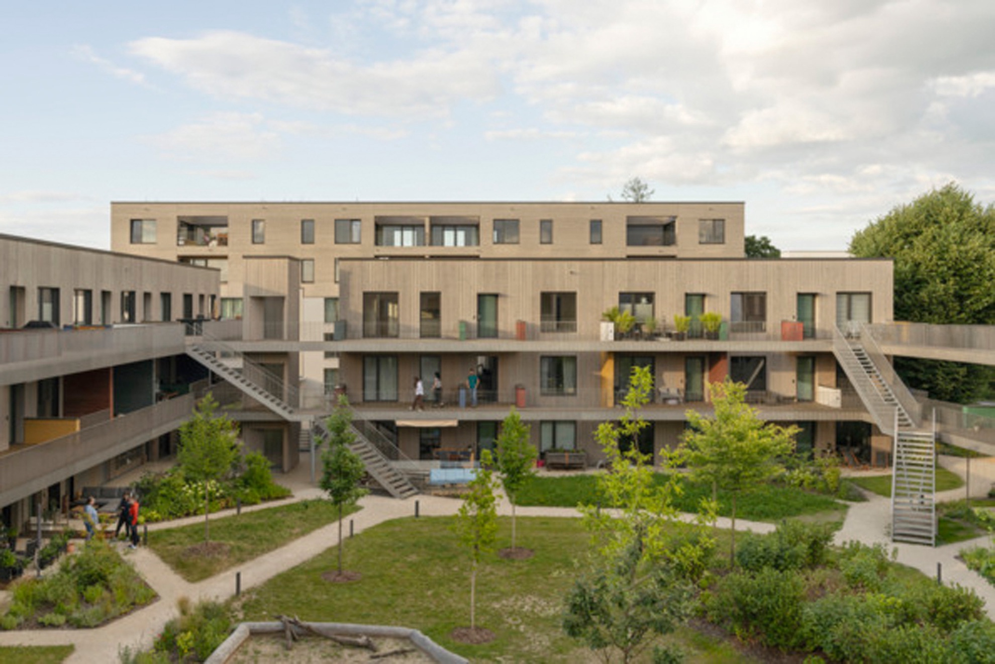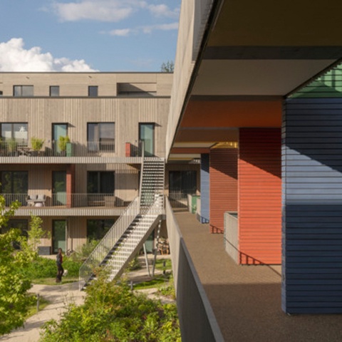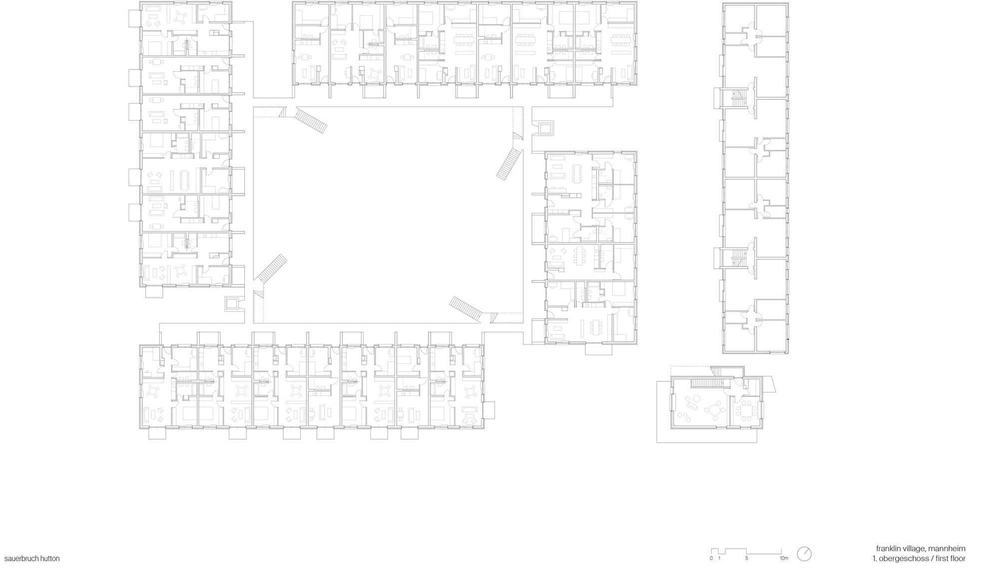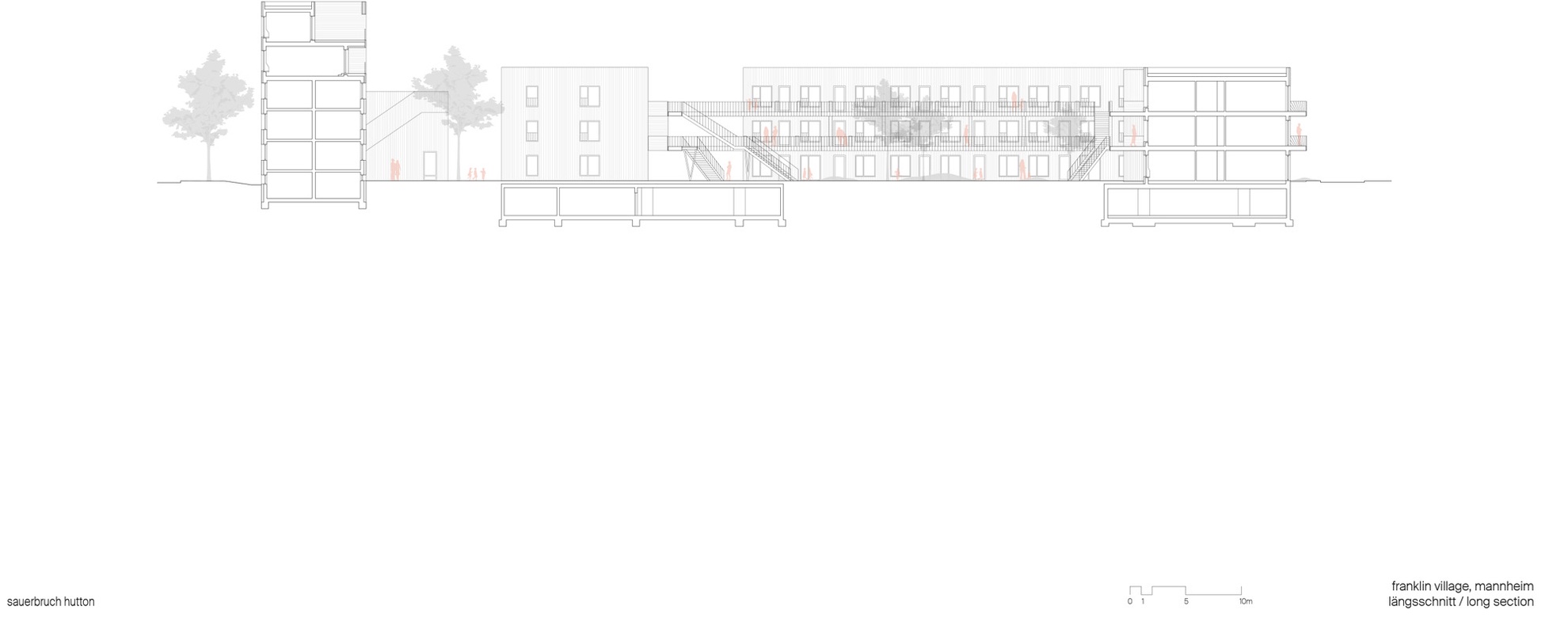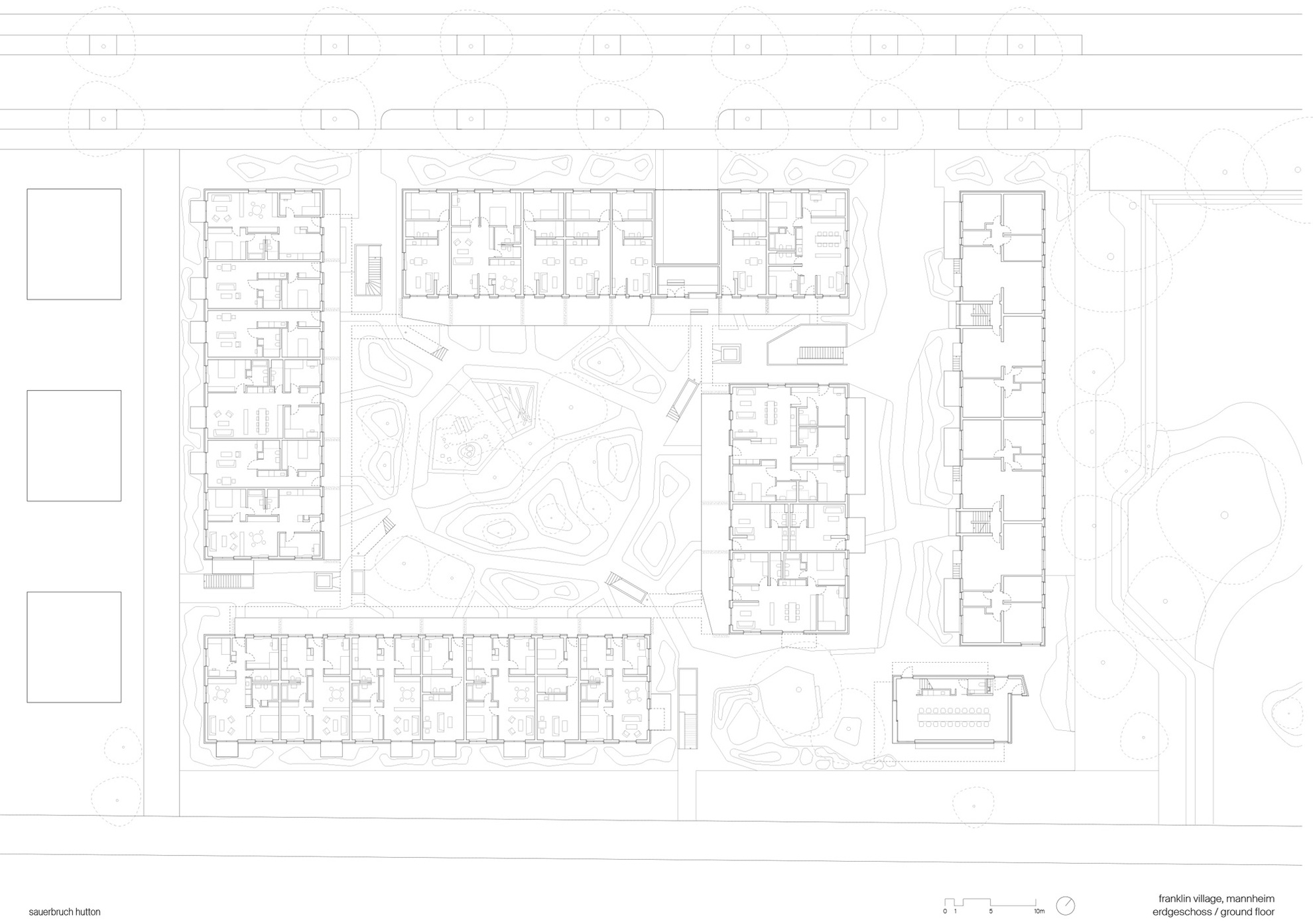 Das 2024 fertiggestellte Wohnquartier Franklin Village befindet sich auf dem ehemaligen US-amerikanischen Militärareal Benjamin Franklin Village in Mannheim, das seit der Übergabe durch die US-Streitkräfte im Jahr 2012 schrittweise zu einem sozial gemischten Stadtquartier entwickelt wird. Es umfasst rund 8.560 m² Bruttogeschossfläche, die sich auf ein eigenständiges Gemeinschaftshaus sowie vier dreigeschossige Gebäuderiegel und eine zweigeschossige Bestandsaufstockung mit vielfältigen Wohnformen verteilen: von Zwei- bis Vier-Zimmer-Wohnungen über Cluster-Wohnungen für Menschen mit Assistenzbedarf bis hin zu vollständig barrierefreien Einheiten. Die von sauerbruch hutton geplanten Gebäude wurden in Holztafelbauweise mit Holz-Beton-Verbund-Decken rings um einen gemeinsamen begrünten Innenhof realisiert, und die einzelnen Wohnungen mit über 3 m breiten Laubengängen erschlossen. Diese schaffen Zonen für nachbarschaftliche Begegnung sowie individuelle Gestaltung. Das soziale Zentrum des Quartiers bildet des Gemeinschaftshaus mit Werkstätten, Veranstaltungsraum, Küche und Dachterrasse. Als herausragendes Beispiel für nachhaltigen, inklusiven und architektonisch hochwertigen Wohnungsbau wurde das Projekt 2025 mit dem Deutschen Architekturpreis (Staatspreis) des Bundesministeriums für Wohnen, Stadtentwicklung und Bauwesen (BMWSB) und der Bundesarchitektenkammer (BAK) ausgezeichnet.