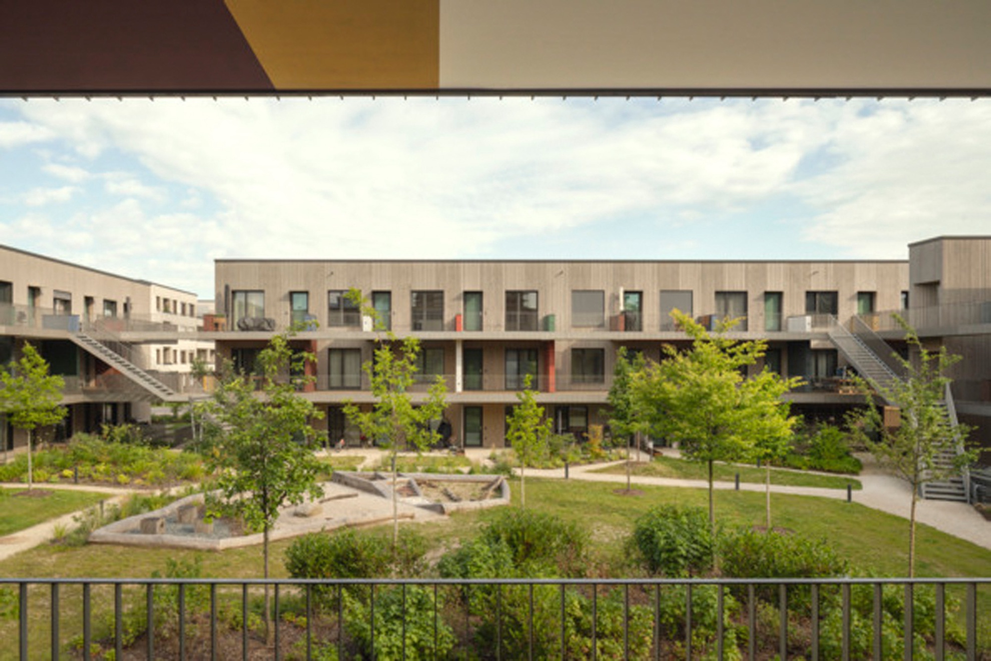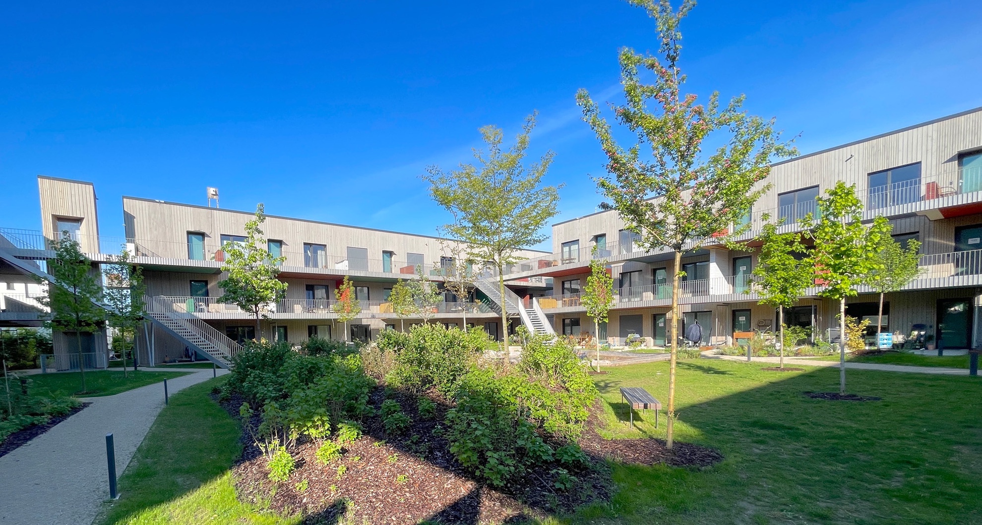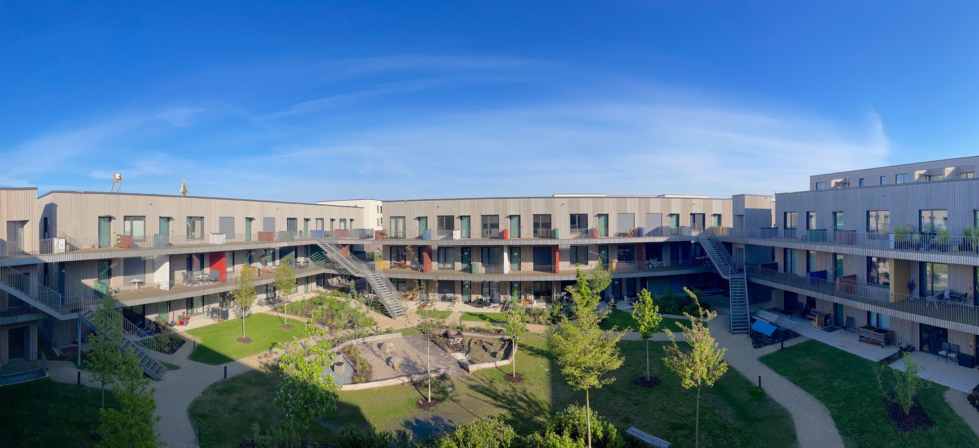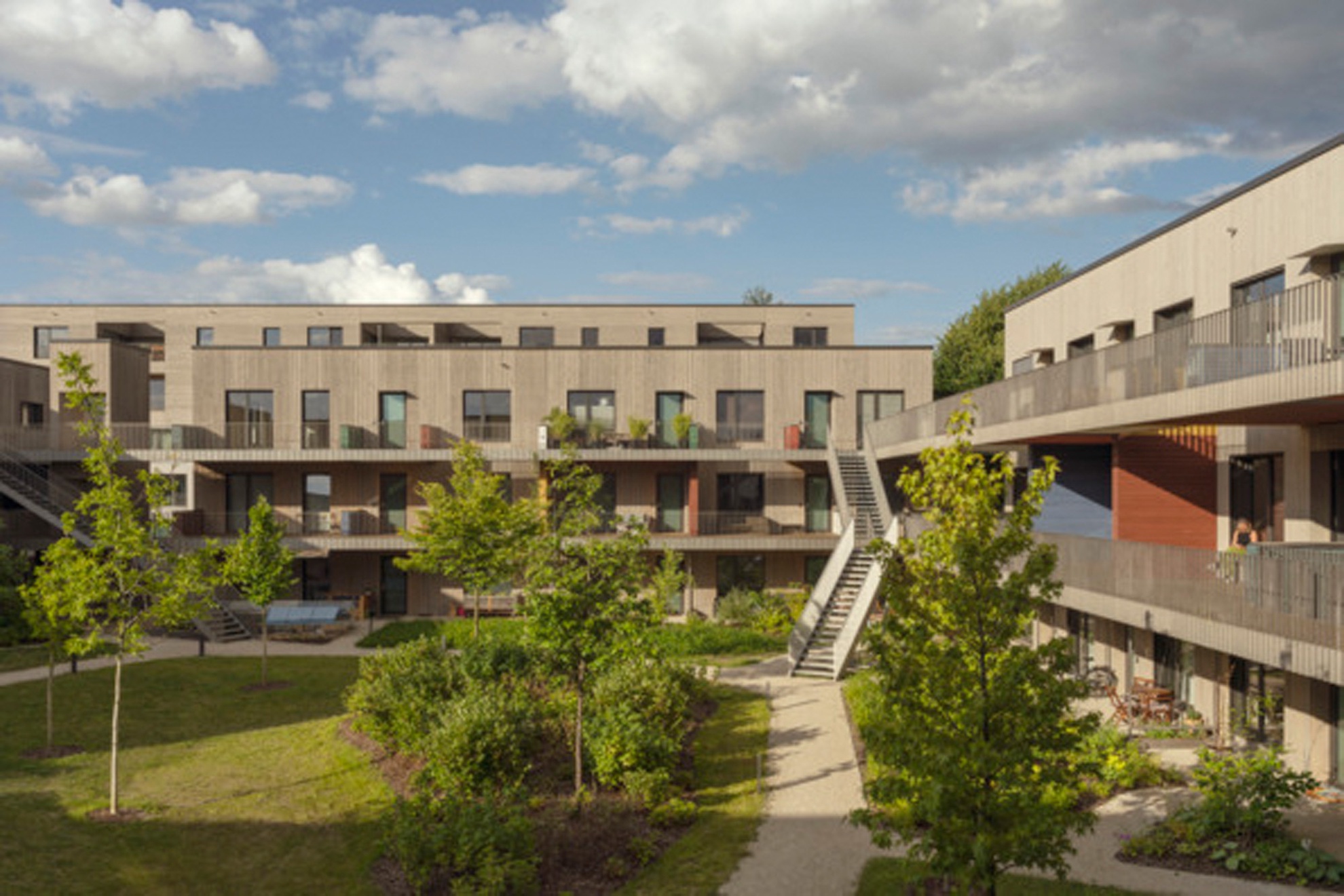 Das 2024 fertiggestellte Wohnquartier Franklin Village befindet sich auf dem ehemaligen US-amerikanischen Militärareal Benjamin Franklin Village in Mannheim, das seit der Übergabe durch die US-Streitkräfte im Jahr 2012 schrittweise zu einem sozial gemischten Stadtquartier entwickelt wird. Es umfasst rund 8.560 m² Bruttogeschossfläche, die sich auf ein eigenständiges Gemeinschaftshaus sowie vier dreigeschossige Gebäuderiegel und eine zweigeschossige Bestandsaufstockung mit vielfältigen Wohnformen verteilen: von Zwei- bis Vier-Zimmer-Wohnungen über Cluster-Wohnungen für Menschen mit Assistenzbedarf bis hin zu vollständig barrierefreien Einheiten. Die von sauerbruch hutton geplanten Gebäude wurden in Holztafelbauweise mit Holz-Beton-Verbund-Decken rings um einen gemeinsamen begrünten Innenhof realisiert, und die einzelnen Wohnungen mit über 3 m breiten Laubengängen erschlossen. Diese schaffen Zonen für nachbarschaftliche Begegnung sowie individuelle Gestaltung. Das soziale Zentrum des Quartiers bildet des Gemeinschaftshaus mit Werkstätten, Veranstaltungsraum, Küche und Dachterrasse. Als herausragendes Beispiel für nachhaltigen, inklusiven und architektonisch hochwertigen Wohnungsbau wurde das Projekt 2025 mit dem Deutschen Architekturpreis (Staatspreis) des Bundesministeriums für Wohnen, Stadtentwicklung und Bauwesen (BMWSB) und der Bundesarchitektenkammer (BAK) ausgezeichnet.