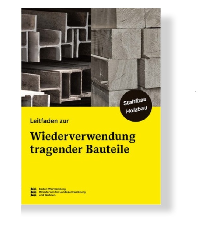 | Das zirkuläre Bauen kann erheblich zur Reduktion der CO₂-Emissionen und des Ressourcenverbrauchs beim Bauen beitragen. Der Leitfaden zur „Wiederverwendung tragender Bauteile“ bietet eine wissenschaftlich fundierte und praxisorientierte Hilfestellung für die Wiederverwendung tragender Holzbauteile. Der Leitfaden ist aus dem vom Ministerium für Landesentwicklung und Wohnen beauftragen Forschungsvorhaben zur Erarbeitung der technischen Grundlagen für die Wiederverwendung tragender Holz- und Stahlbauteile des Karlsruhe Institut für Technologie (KIT) und der Technische Universität (TU) München entstanden. Leitfaden zur Wiederverwendung tragender Stahl- und Holzbauteile |